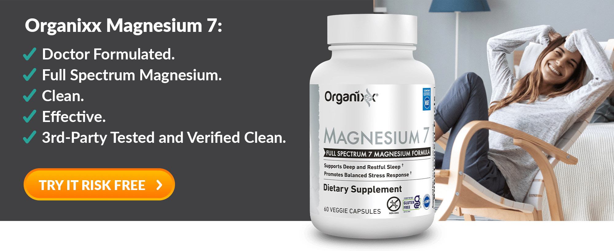 Magnesium 7 from Organixx is the only formula with all 7 major forms plus a vitamin to boost absorption.